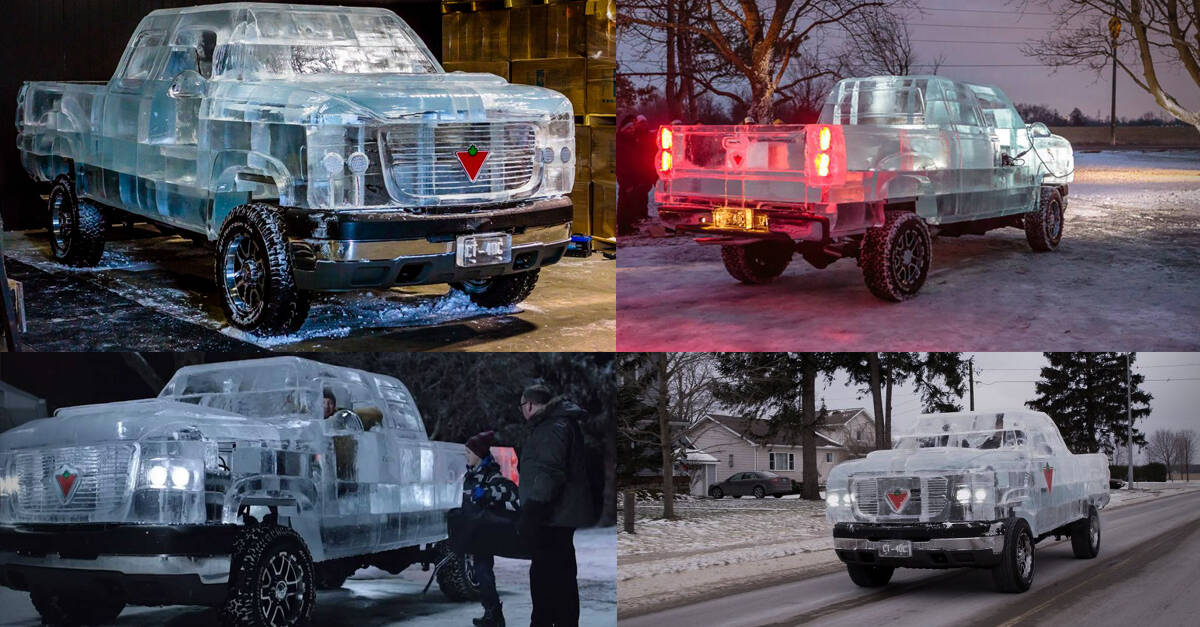 Este es un camión hecho completamente de hielo. Lo asombroso de este camión es que realmente funciona. Es fruto de la idea de la tienda de automóviles Canadian Tire y se fabricó en un intento de hacer más interesantes las baterías de los autos.