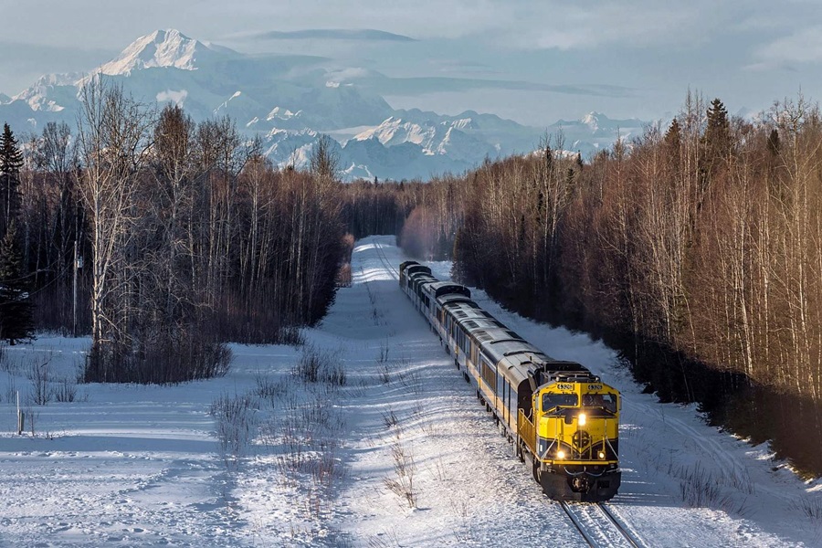 Este trayecto de 351 millas discurre entre Anchorage y Fairbanks, con parada también en el Parque Nacional y Reserva de Denali. Los viajeros también pueden desembarcar en algunas paradas para realizar actividades como motos de nieve y trineos tirados por perros. Alaska Railroad ofrece varios paquetes de invierno que varían en días y experiencias.