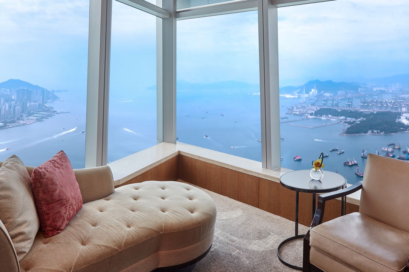 Las suntuosas habitaciones, situadas entre las plantas 104 y 116, tienen ventanas desde las que se puede contemplar el puerto Victoria, el antiguo refugio contra tifones de Yau Ma Tei y el nuevo distrito cultural de West Kowloon.