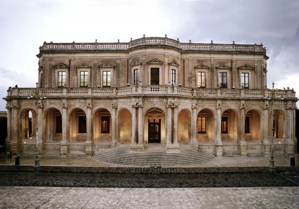 El palacio está construido en estilo barroco siciliano tras su compra por el barón Guglielmo Beneventano.