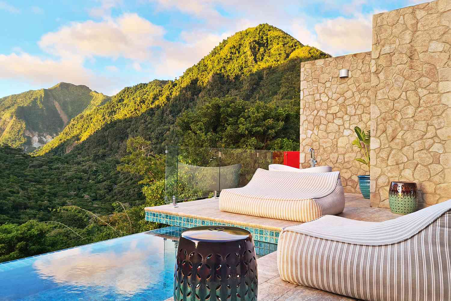Otras opciones inspiradas en la isla son un masaje relajante con aceites orgánicos locales, un exfoliante corporal con ingredientes autóctonos y la envoltura de arcilla volcánica Soufriere, característica del spa. Una cena gourmet de tres platos completa la velada.