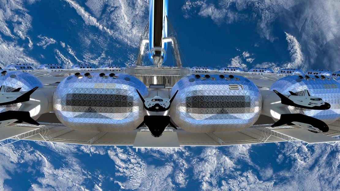Al embarcarse en este viaje estelar, los pasajeros se dirigirán a un centro de atraque de gravedad cero y, a través de los huecos de los ascensores, llegarán a una periferia de módulos habitables en los que la gravedad artificial hará que se asienten firmemente.
