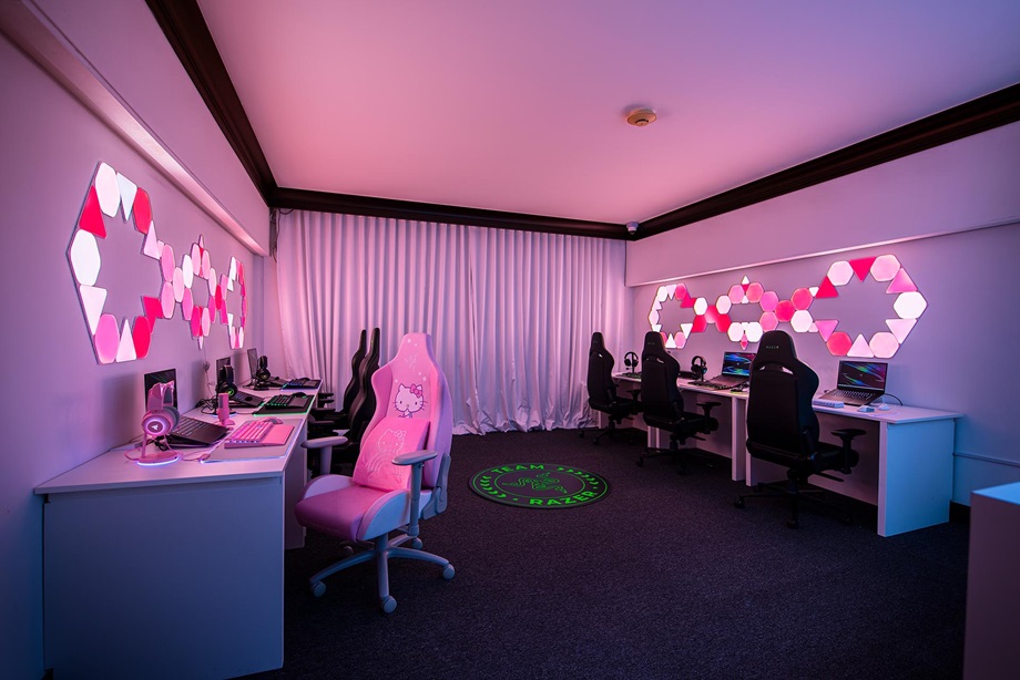 Para una sesión de juego más acogedora con toques kawaii, esta suite cuenta con una configuración de juego 3×3, sillas Hello Kitty x Razer y paneles de luz cambiantes personalizables. Perfecta para jugadores y streamers que adoran los detalles inesperados en su plan de juego.