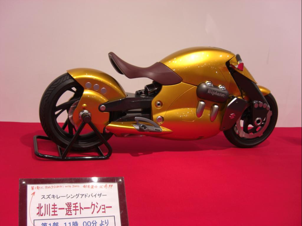 En el 2007, Suzuki volvió a dejar al salón de Tokio boquiabierto. Presentó la concept-bike Suzuki Biplane, inspirada en la libertad de volar en un biplano como el de los hermanos Wright, pero en un concepto de moto futurista, baja y larga como las motos customizadas.