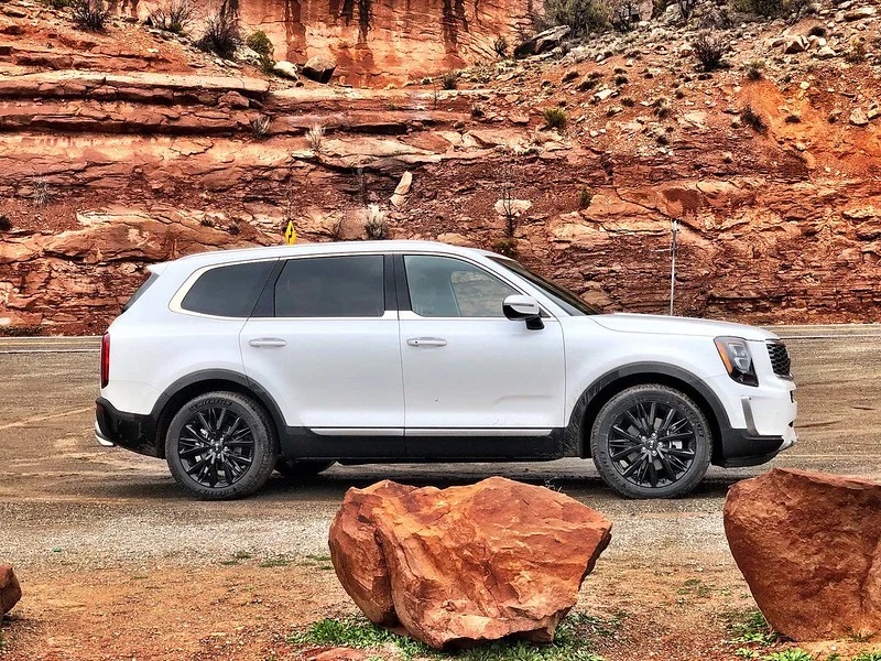 El Kia Telluride del 2025, con un precio inicial de $37,355, es el mejor SUV mediano (9.5/10). Su motor V6 de 3.8 litros produce 291 caballos de fuerza y 262 libras pie de torque, con un manejo suave y capacidad de remolque de 5,500 lb.