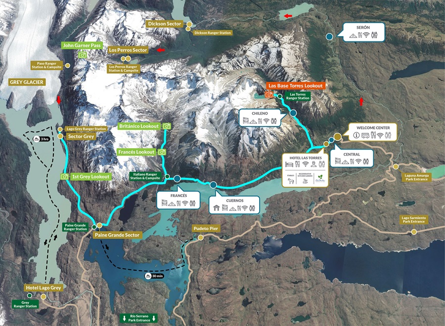 El Torres del Paine W Trek, en Patagonia chilena, es un circuito de 71 km por glaciares, lagos turquesa y torres de granito. Su dificultad moderada incluye vientos fuertes y cruces de ríos, con vistas que limpian la mente.